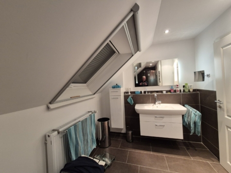 Hochwertige Keramikfliesen und edles Parkett ziehen sich durch das gesamte Haus