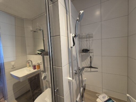 Das Bad im Erdgeschoß wurde bereits sehr aufwendig und geschmackvoll kernsaniert.